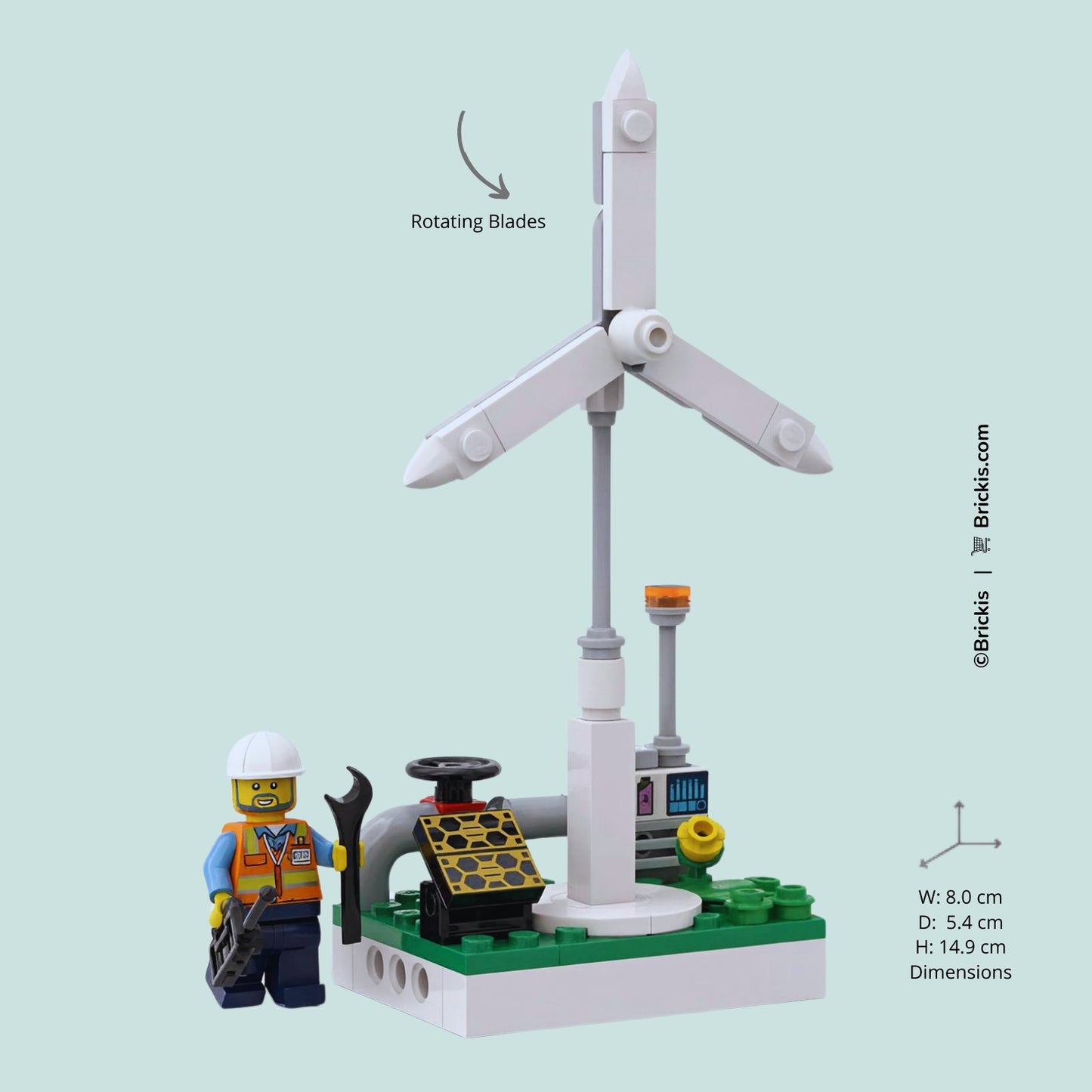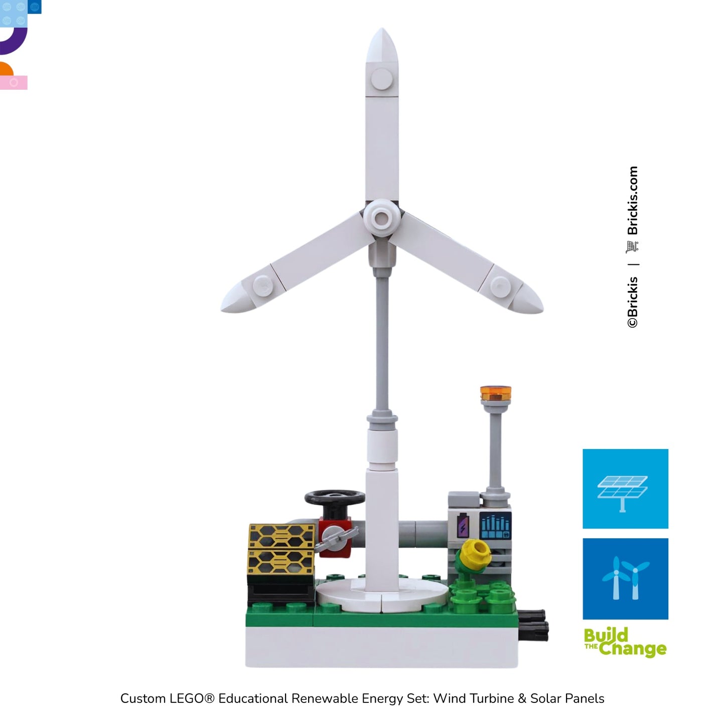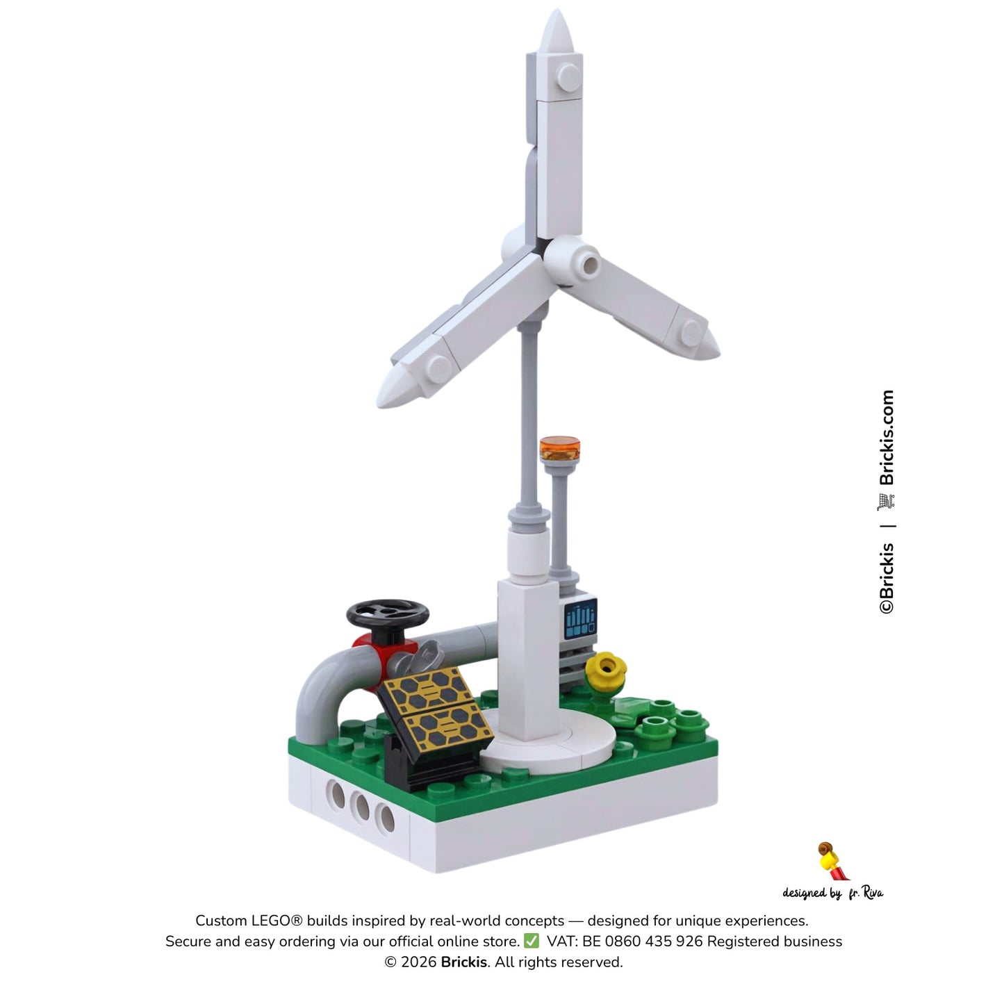 Part of the Brickis Energy Series, this custom LEGO® Renewable Energy Station represents a hybrid energy system where wind and solar technologies work together to generate clean electricity.