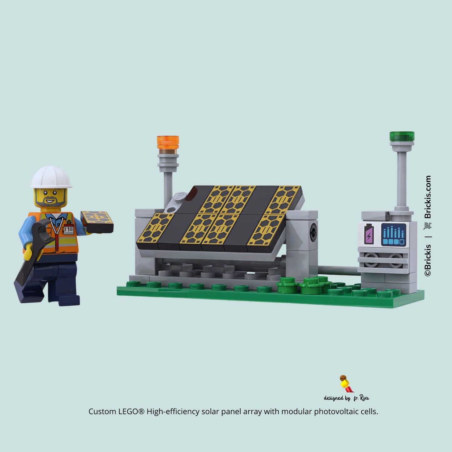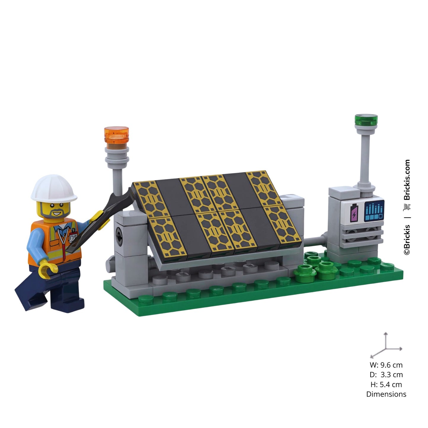 An optional renewable energy technician minifigure can be included, installing modular photovoltaic panels and maintaining the solar installation.