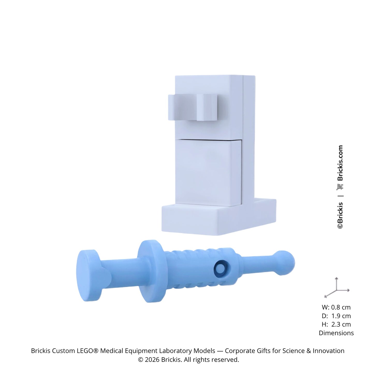 Part of the Brickis© Medical & Lab Series, this custom LEGO® model represents one of the most essential tools in modern healthcare and laboratory environments: the syringe.