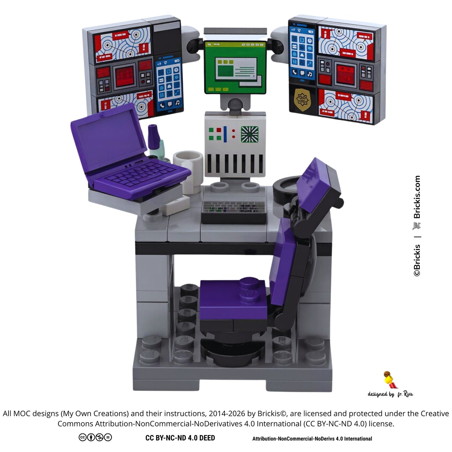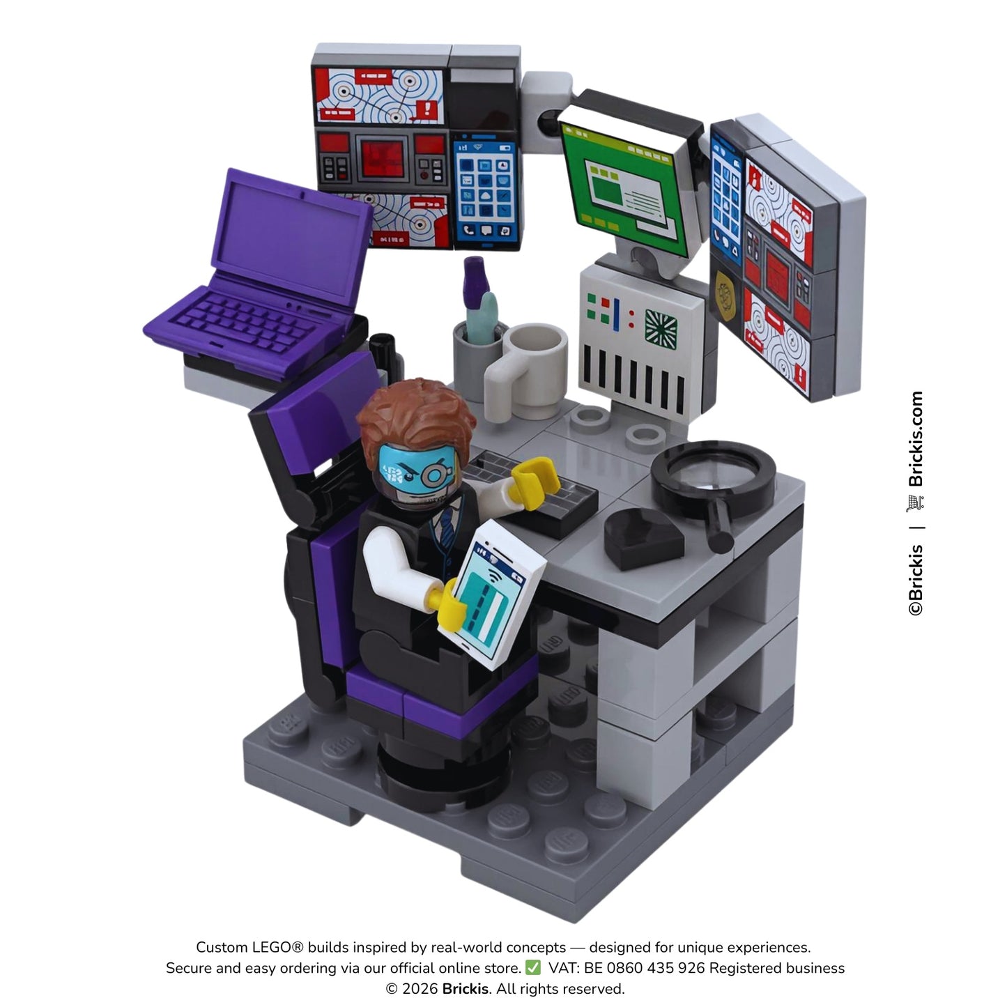 Part of the Brickis Modern Tech Collection, this custom LEGO® Cybersecurity Analyst Desk captures the atmosphere of a professional cybersecurity workspace designed for analysts, ethical hackers, and digital security specialists.